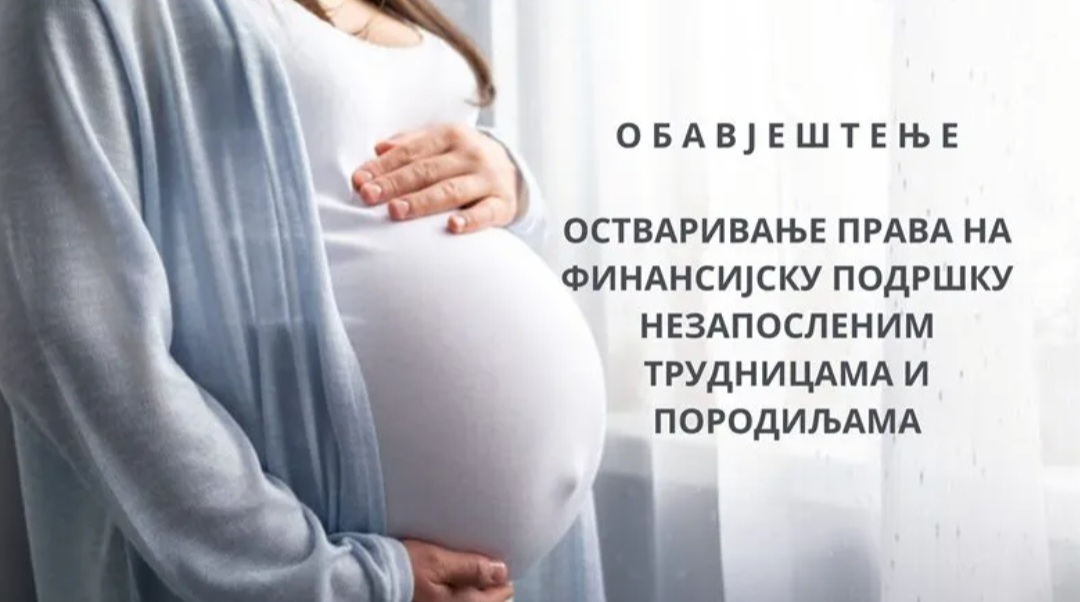 Обавјештавамо све незапослене труднице и породиље да се захтјеви за остваривање права на финансијску подршку сходно Одлуци о финансијској подршци незапосленим трудницама и породиљама („Службени лист ЦГ-Општински прописи“, бр. 35/25) подносе сваким радним даном од 01.10.2025. године у просторијама Секретаријату за културу, социјална и друга питања општине Пљевља од 11-14 часова