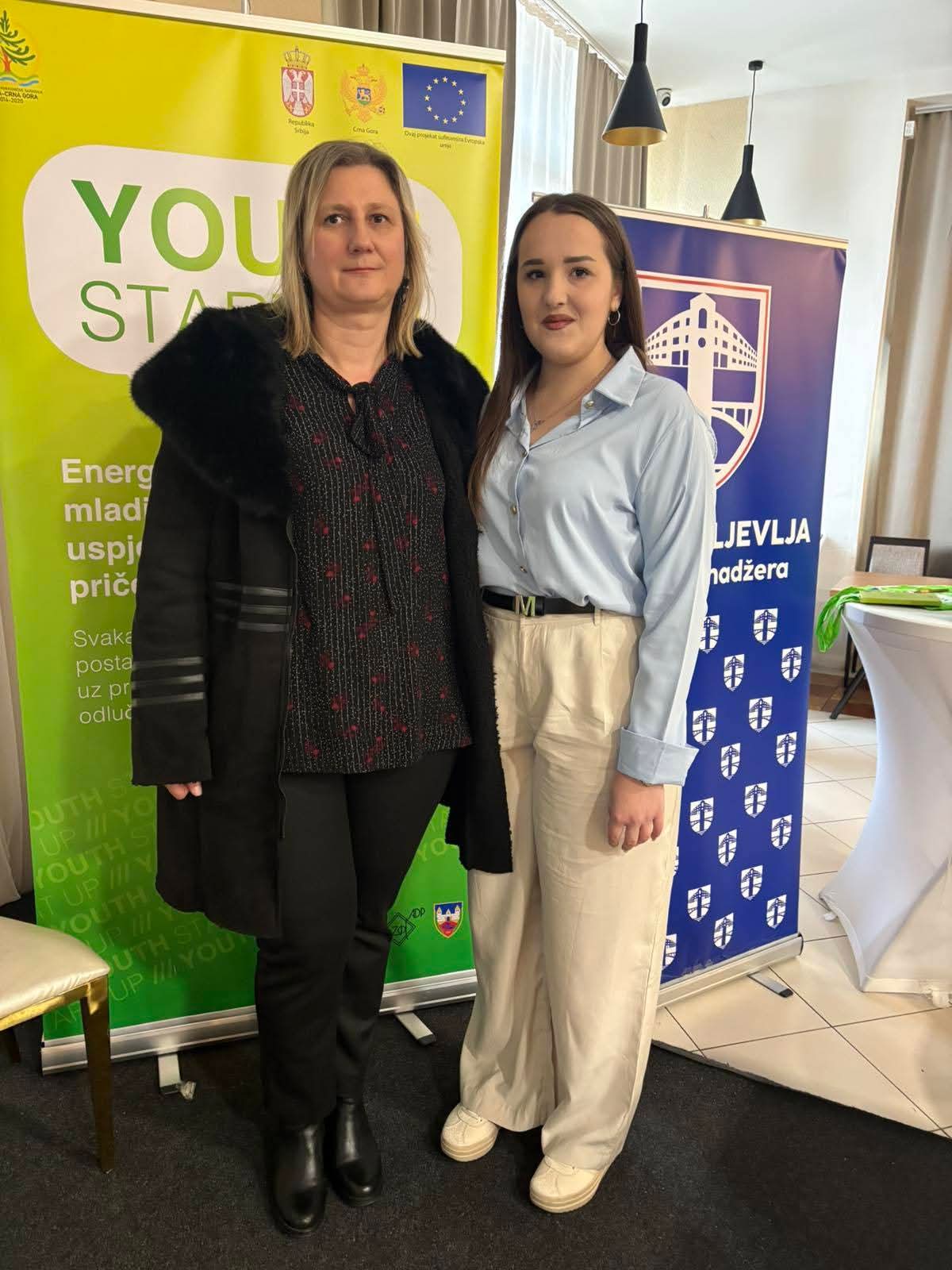 🔵Дана 18.12.2025. год. одржана је завршна конференција у оквиру пројекта међуграничне сарадње Пљеваља и Сјенице под покровитељством ЕУ. Конференција је носила назив Youth Start Up, а на њој су у име Средње стручне школе присуствовали професорица Амира Чолак и некадашња ученица ове школе Вукица Поповић.