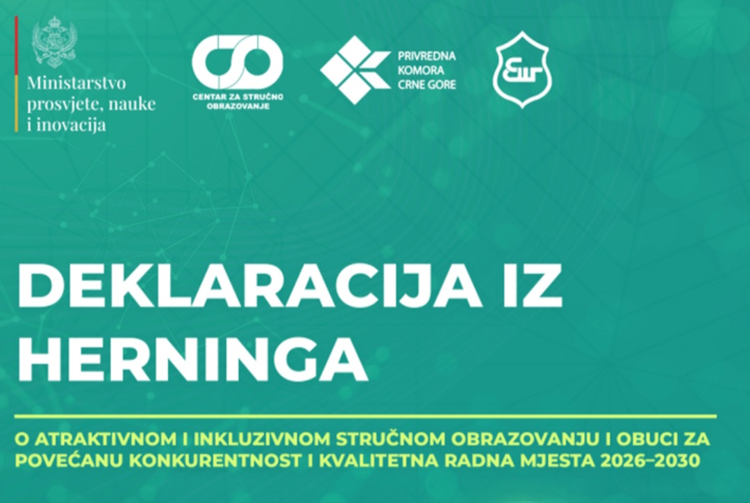 U cilju veće vidljivosti i dostupnosti svim zainteresovanim stranama, nedavno usvojena Deklaracija iz Herninga, dostupna je i na crngorskom jeziku. Usvojena 12. septembra 2025. godine od strane ministara nadležnih za stručno obrazovanje i obuku država članica EU, zemalja kandidata za članstvo, zemalja Evropskog ekonomskog prostora, evropskih socijalnih partnera i Evropske komisije, Deklaracija obnavlja i jača koordinisane napore na reformi stručnog obrazovanja i obuke u skladu sa promjenama u društvu i potrebama tržišta rada.
