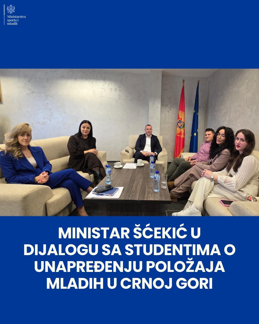 Ministar sporta i mladih Dragoslav Šćekić sastao se i razgovarao sa studentima o ključnim programima koji unapređuju položaj mladih u Crnoj Gori. Fokus sastanka bio je na jačanju podrške, stvaranju novih prilika i izgradnji ambijenta u kojem mladi mogu da napreduju i ostvare svoj pun potencijal. Ministarstvo ostaje posvećeno kontinuiranom dijalogu i strateškim rješenjima u interesu mladih.