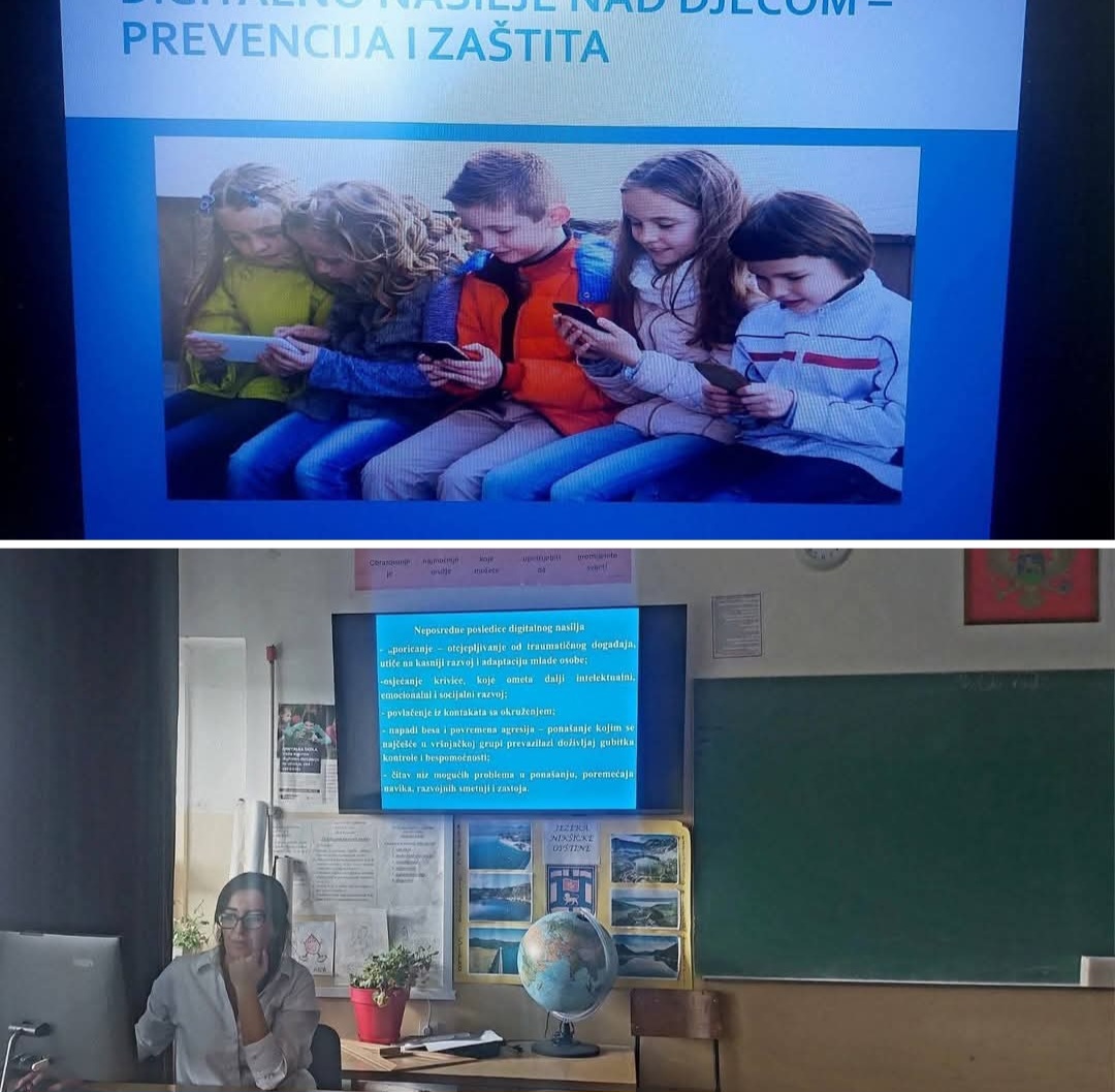 Psihološkinja u Osnovnoj školi “Jagoš Kontić”, Marija Babić, održala je predavanje učenicima VII-3 razreda na temu “Digitalno nasilje nad djecom – prevencija i zaštita”. Tokom prezentacije učenici su aktivno učestvovali u razgovoru, iznosili svoja iskustva i mišljenja o ponašanju na internetu, te su zajedno sa psihologom analizirali primjere digitalnog nasilja i načine odgovorne upotrebe društvenih mreža.