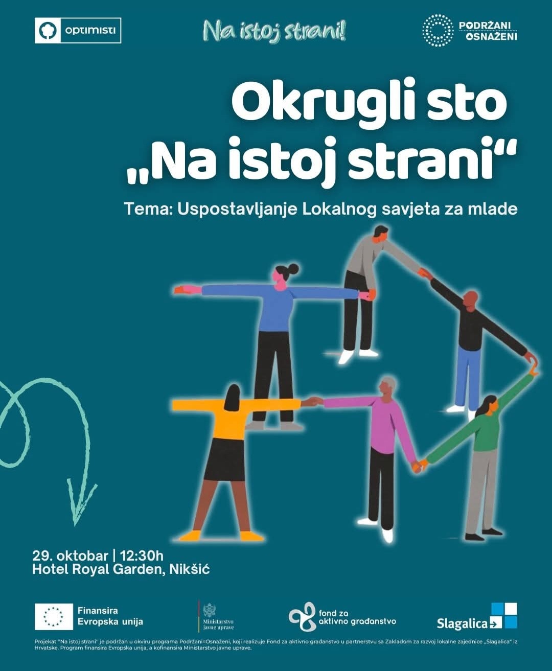 Na okruglom stolu “Na istoj strani” predstavljeni su rezultati projekta za uspostavljanje Lokalnog savjeta za mlade – mehanizma koji mladima daje prostor da aktivno učestvuju u kreiranju politika koje ih se tiču.