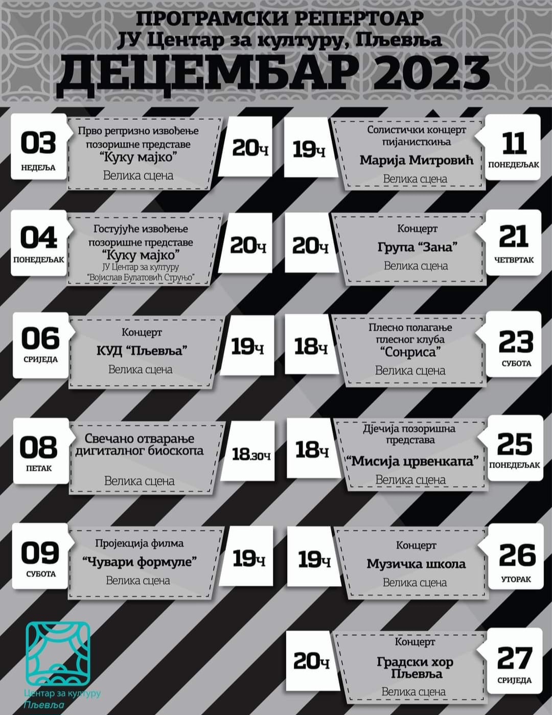 NovostiПрограмски репертоар за децембар 2023. mladicg5. Decembra 2023.5. Decembra 2023.01 mins Total Views: 117Share this: Click to share on Facebook (Opens in new window) Facebook Click to share on X (Opens in new window) X Like this:Like Loading... Navigacija članaka Previous: Registracija za online konferencijuNext: 59. MOSI IGRE U UŽICU OD 10. DO 14. JULA 2024. GODINE Komentariši Poništi odgovorVaša email adresa neće biti objavljivana. Neophodna polja su označena sa *Komentar * Ime * Email * Web stranica Sačuvaj moje ime, email i web stranicu u ovom browseru za buduće komentare. Notify me of follow-up comments by email. Notify me of new posts by email.