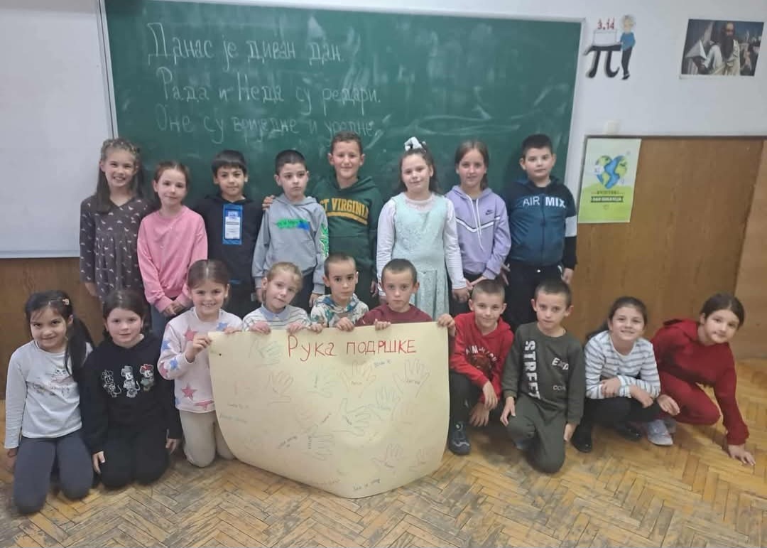 Sa djecom je razgovarano o tome šta znači biti dobar drug i kako mogu jedni drugima pomoći i uljepšati dan. Učenici su kroz igru i zajednički rad učili da prepoznaju i izraze svoje emocije, da uoče koliko su im prijatelji važni i da svako može biti podrška drugome. Zatim su na zajedničkom panou crtali otiske svojih ruku i ukrašavali ih lijepim porukama.