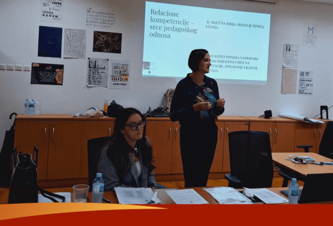 Jednodnevni program obuke „Vještine građenja odnosa: čvrsta veza između škole i porodice“ (Kat. br. 351, Druge oblasti) realizovan je u Zavodu za školstvo. Obuku su vodile trenerice Milica Pušonjić i Katarina Čarapić, uz aktivno učešće nastavnika i nastavnica i stručnih saradnika i saradnica iz različitih obrazovno-vaspitnih ustanova.